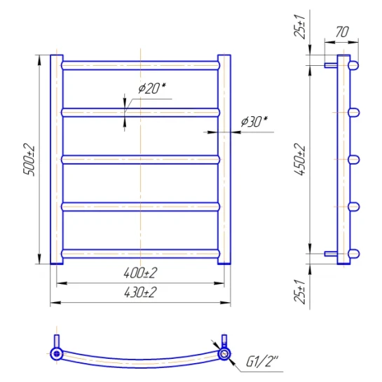 Товарна категорія: Рушникосушки, Група: Рушникосушки з нержавійки (Рушникосушки з нержавіючої сталі) Тип: Водяна. Бренд: MARIO Країна-виробник: Україна Рушникосушка Класік 500х430/400 Модель: Класік Артикул: 1.1.0100.01.P Кількість ребер: 5 Висота: 500 мм., Ширина:430 мм., Підключ: 400 мм Вага: 2,6 кг., Об'єм: 1,1 л. Теплова потужність 75/65/20 С: 88 Вт., Тен: 120 Вт. Підключення: Низ.