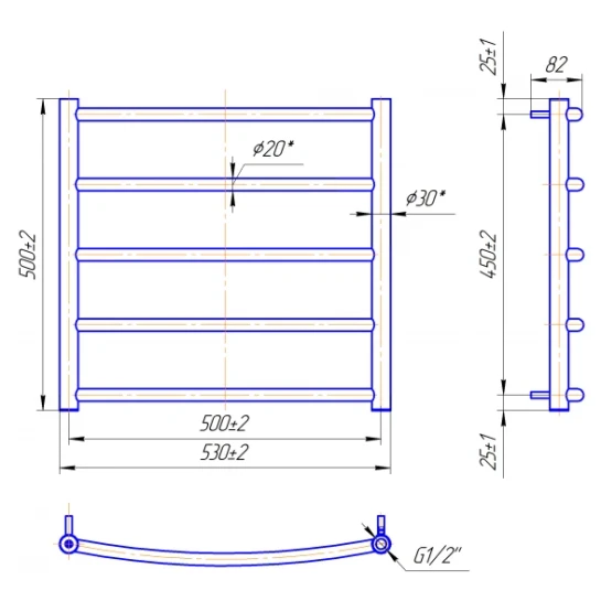 Товарна категорія: Рушникосушки, Група: Рушникосушки з нержавійки (Рушникосушки з нержавіючої сталі) Тип: Водяна. Бренд: MARIO Країна-виробник: Україна Рушникосушка Класік 500х530/500 Модель: Класік Артикул: 1.1.0101.01.P Кількість ребер: 5 Висота: 500 мм., Ширина:530 мм., Підключ: 500 мм Вага: 2,9 кг., Об'єм: 1,2 л. Теплова потужність 75/65/20 С: 102 Вт., Тен: 120 Вт. Підключення: Низ.