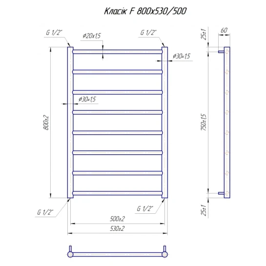 Рушникосушка водяна MARIO Класік 800х530/500 сатинова