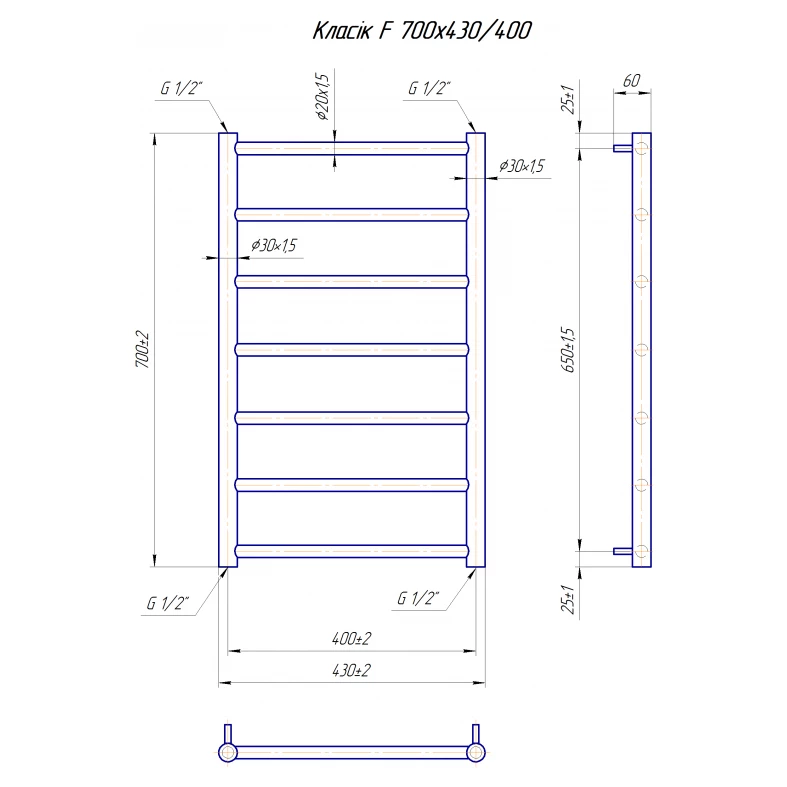 Рушникосушка водяна MARIO Класік F 700х430/400