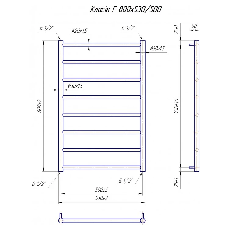 Рушникосушка водяна MARIO Класік F 800х530/500