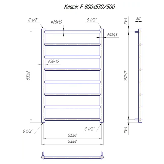 Простота завжди стильної класики сподобається кожному і гармонійно доповнить будь-який дизайн ванної кімнати. Сушарка для рушників з нержавіючої сталі AISI 304 Класік F 800x530/500, де 800 мм - висота, 530 мм - ширина, 500 мм - відстань між центрами, а діаметр зєднання - G 1/2, ідеально поєднує якість та простий, але привабливий зовнішній вигляд.