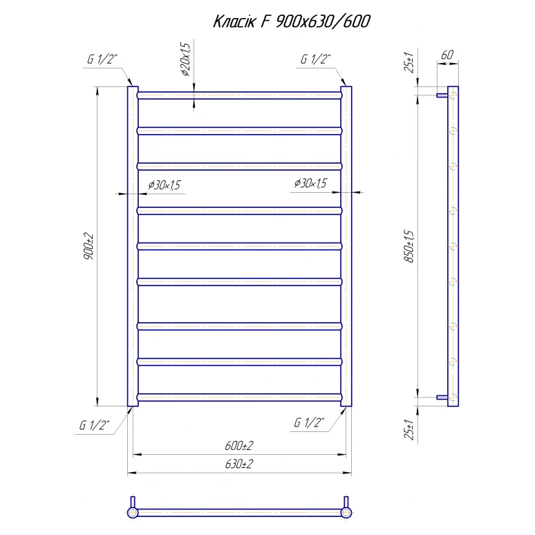 Рушникосушка водяна MARIO Класік F 900х630/600