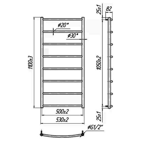 Виробник: Mario Колекція: Класік НР 1100х530/500 Артикул: 1.3.0103.01.P Підключення: На гарячу воду Колір: Хром Гарантія: від виробника Висота 1100 мм Ширина 530 мм Глибина 105 мм Міжцентрову відстань 500 мм Кількість ребер: 8 Діаметр підключення: G 1/2 '' Обсяг 2.1 л Вага 5.1 кг Рекомендована потужність ТЕНа (MEG / REG / MOA), W 200 Матеріал: нержавіюча сталь Марка стали: AISI 304 Країна-виробник: Україна Комплект поставки: полотенцесушитель - 1 шт. комплект кріплень - 1 шт. кран Маєвського - 1 шт. заглушка - 1 шт. паспорт - 1 шт. коробка - 1 шт.