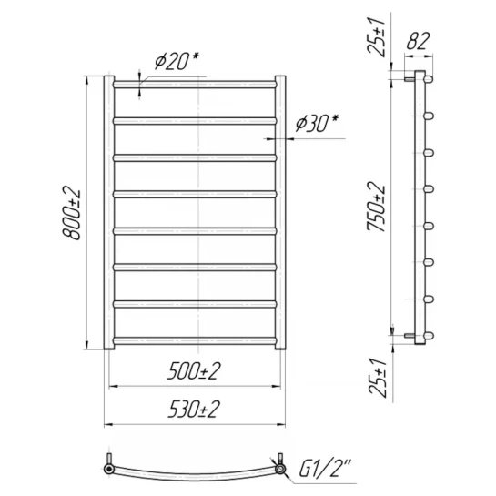 Виробник: Mario Колекція: Класік НР 800х530/500 Артикул: 1.3.0102.01.P Підключення: На гарячу воду Колір: Хром Гарантія: від виробника Висота 800 мм Ширина 530 мм Глибина 90 мм Міжцентрову відстань - мм Кількість ребер: 6 Діаметр підключення: G 1/2 '' Обсяг - л Вага - кг Рекомендована потужність ТЕНа (MEG / REG / MOA), W - Матеріал: нержавіюча сталь Марка стали: AISI 304 Країна-виробник: Україна Комплект поставки: полотенцесушитель - 1 шт. комплект кріплень - 1 шт. кран Маєвського - 1 шт. заглушка - 1 шт. паспорт - 1 шт. коробка - 1 шт.