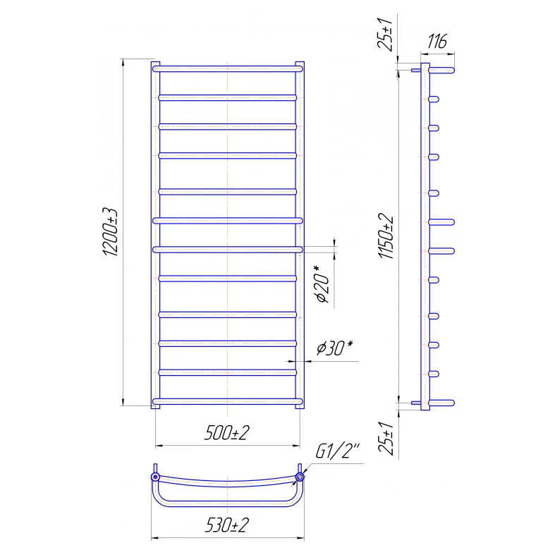 Товарна категорія: Рушникосушки. Група: Рушникосушки з нержавійки (Рушникосушки з нержавіючої сталі) Тип: Водяна. Підключення: Низ. MARIO Рушникосушка Люкс 1200х530/500 Бренд: MARIO Країна-виробник: Україна Артикул: 1.1.0307.01.P Кількість ребер: 12 Висота: 1200 мм., Ширина: 530 мм., Підключ: 500 мм. Вага: 7,2 кг., Об'єм: 2,8 л. Теплова потужність 75/65/20 С: 167 Вт., Тен: 300 Вт.