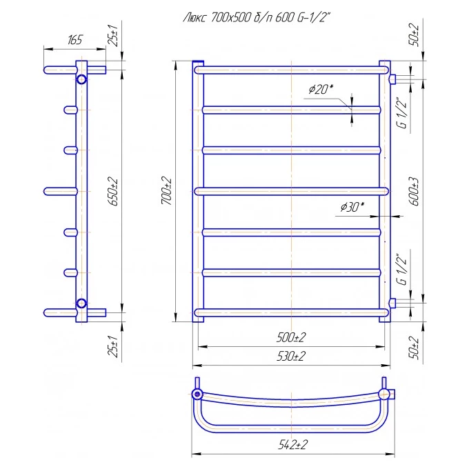 Товарна категорія: Рушникосушки. Група: Рушникосушки з нержавійки (Рушникосушки з нержавіючої сталі) Тип: Водяна. Підключення: бокове MARIO Рушникосушка Люкс 700х550/600 Б/П 1/2" Бренд: MARIO Країна-виробник: Україна Артикул:1.1.2305.02.P Кількість ребер: 7 Висота: 700 мм., Ширина: 550 мм., Підключ: 600 мм. Вага: 4,3 кг., Об'єм: 1,7 л. Теплова потужність 75/65/20 С: 153 Вт., ТЕН: 120 Вт.