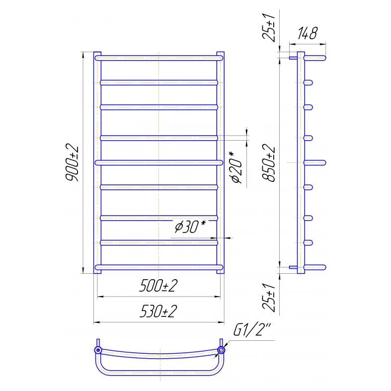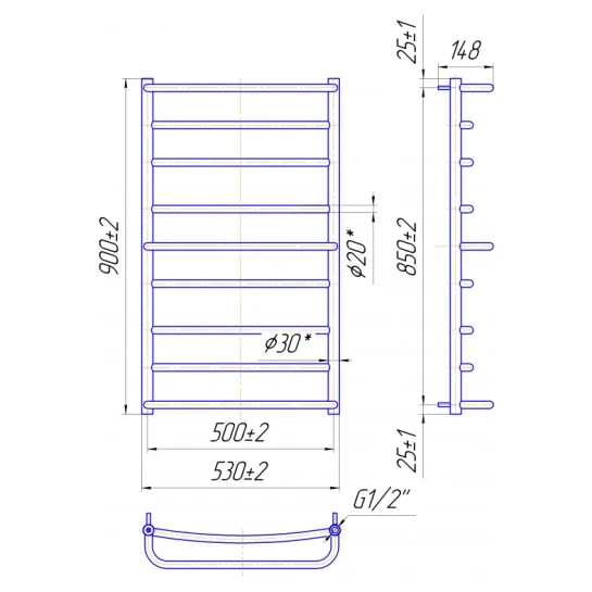 Товарна категорія: Рушникосушки. Група: Рушникосушки з нержавійки (Рушникосушки з нержавіючої сталі) Тип: Водяна. Підключення: Низ. MARIO Рушникосушка Люкс 900х530/500 Бренд: MARIO Країна-виробник: Україна Артикул: 1.1.0305.01.P Кількість ребер: 9 Висота: 900 мм., Ширина: 530 мм., Підключ: 500 мм. Вага: 5,5 кг., Об'єм: 2,1 л. Теплова потужність 75/65/20 С: 192 Вт., Тен: 200 Вт.