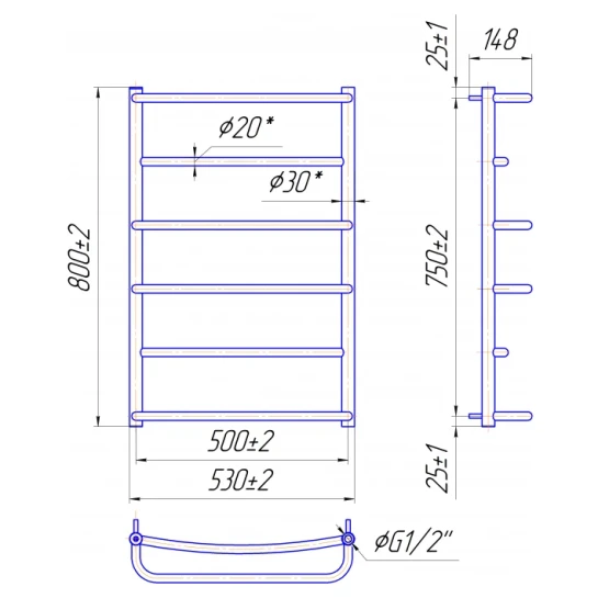 Виробник: Mario Колекція: Люкс НР 800х530/500 Артикул: 1.3.0302.01.P Підключення: На гарячу воду Колір: Хром Гарантія: від виробника Висота 800 мм Ширина 530 мм Глибина 170 мм Міжцентрову відстань 500 мм Кількість ребер: 6 Діаметр підключення: G 1/2 '' Обсяг 1.7 л Вага 4,3 кг Рекомендована потужність ТЕНа (MEG / REG / MOA), W 120 Матеріал: нержавіюча сталь Марка стали: AISI 304 Країна-виробник: Україна Комплект поставки: полотенцесушитель - 1 шт. комплект кріплень - 1 шт. кран Маєвського - 1 шт. заглушка - 1 шт. паспорт - 1 шт. коробка - 1 шт.