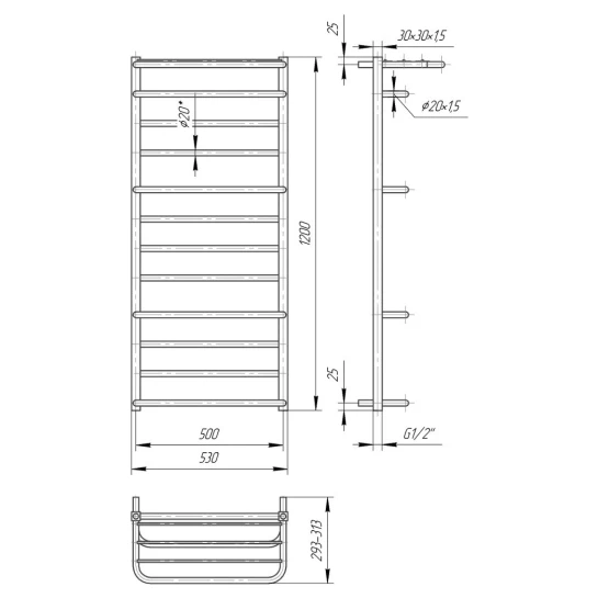 Виробник: Mario Колекція: Люксор 1200х530/500 Артикул: 1.2.4401.03.P Підключення: На гарячу воду Колір: Хром Гарантія: від виробника Висота 1200 мм Ширина 530 мм Глибина 295 мм Міжцентрову відстань 500 мм Кількість ребер: 12 Діаметр підключення: G 1/2 '' Обсяг 3.3 л Вага 8.7 кг Рекомендована потужність ТЕНа (MEG / REG / MOA), W 400 Матеріал: нержавіюча сталь Марка стали: AISI 304 Країна-виробник: Україна Комплект поставки: полотенцесушитель - 1шт. комплект кріплень - 1шт. кран Маєвського - 1 шт. заглушка - 1шт. паспорт - 1шт. коробка - 1шт.