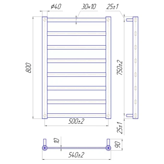 Рушникосушарка "Маріо" Модена 800х540/500. Розміри: висота - 800 мм, ширина - 540 мм, глибина 90 мм, міжцентрова відстань для підключення - 500 мм, діаметр підключення G1/2''. Варіанти підключення: нижнє, діагональне та бічне. Кількість ребер - 8, стояки з круглої труби. Виготовлена з полірованої нержавіючої сталі без хромування. Варіанти покриття: полірована, чорний мат, білий глянець, золото. Для всесезонної роботи водяну модель можна переобладнати на комбіновану, встановивши ТЕН, рекомендована потужність 300 Вт. Сумісні аксесуари: поворотні полиці та навісні гачки для збільшення функціональності. Рекомендовано підключати рушникосушарку за допомогою кранів Маріо. Гарантія - 50 років в закритій системі опалення, 5 років у централізованій.