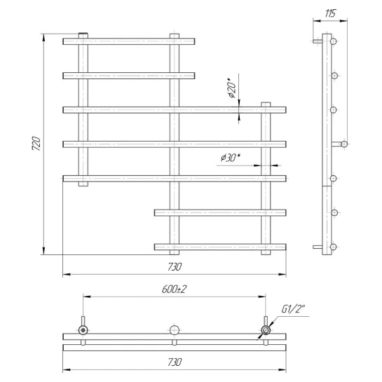Товарна категорія: Рушникосушки. Група: Рушникосушки з нержавійки (Рушникосушки з нержавіючої сталі) Тип: Водяна. Підключення: низ MARIO Рушникосушка Сонет 720х730/600 Бренд: MARIO Країна-виробник: Україна Артикул: 1.1.1600.01.P Кількість ребер: 7 Висота: 720 мм., Ширина: 730 мм., Підключ: 600 мм. Вага: 5 кг., Об'єм: 1,7 л. Теплова потужність 75/65/20 С: 172 Вт., ТЕН: 200 Вт.