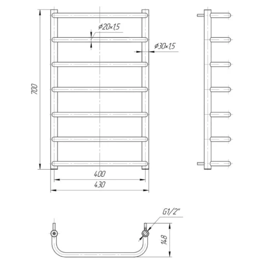 Товарна категорія: Рушникосушки. Група: Рушникосушки з нержавійки (Рушникосушки з нержавіючої сталі) Тип: Водяна. Підключення: Низ. MARIO Рушникосушка Стандарт 700х430/400 Бренд: MARIO Країна-виробник: Україна Артикул: 1.1.0204.01.P Кількість ребер: 7 Висота: 700 мм., Ширина: 430 мм., Підключ: 400 мм. Вага: 4,2 кг., Об'єм: 1,7 л. Теплова потужність 75/65/20 С: 146 Вт., Тен: 120 Вт.