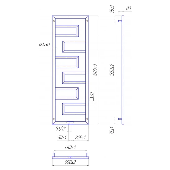 Виробник: Mario Колекція: Талія 1500х500/50 Артикул: 1.2.5000.03.Р Підключення: На гарячу воду Колір: Хром Гарантія: від виробника Висота 1500 мм Ширина 500 мм Глибина 80 мм Міжцентрову відстань 50 мм Кількість ребер: 6 Діаметр підключення: G 1/2 '' Обсяг 7.1 л Вага 9.4 кг Рекомендована потужність ТЕНа (MEG / REG / MOA), W 400 Матеріал: нержавіюча сталь Марка стали: AISI 304 Країна-виробник: Україна Комплект поставки: полотенцесушитель - 1 шт. комплект кріплень - 1 шт. кран Маєвського - 1 шт. заглушка - 1 шт. паспорт - 1 шт. коробка - 1 шт.