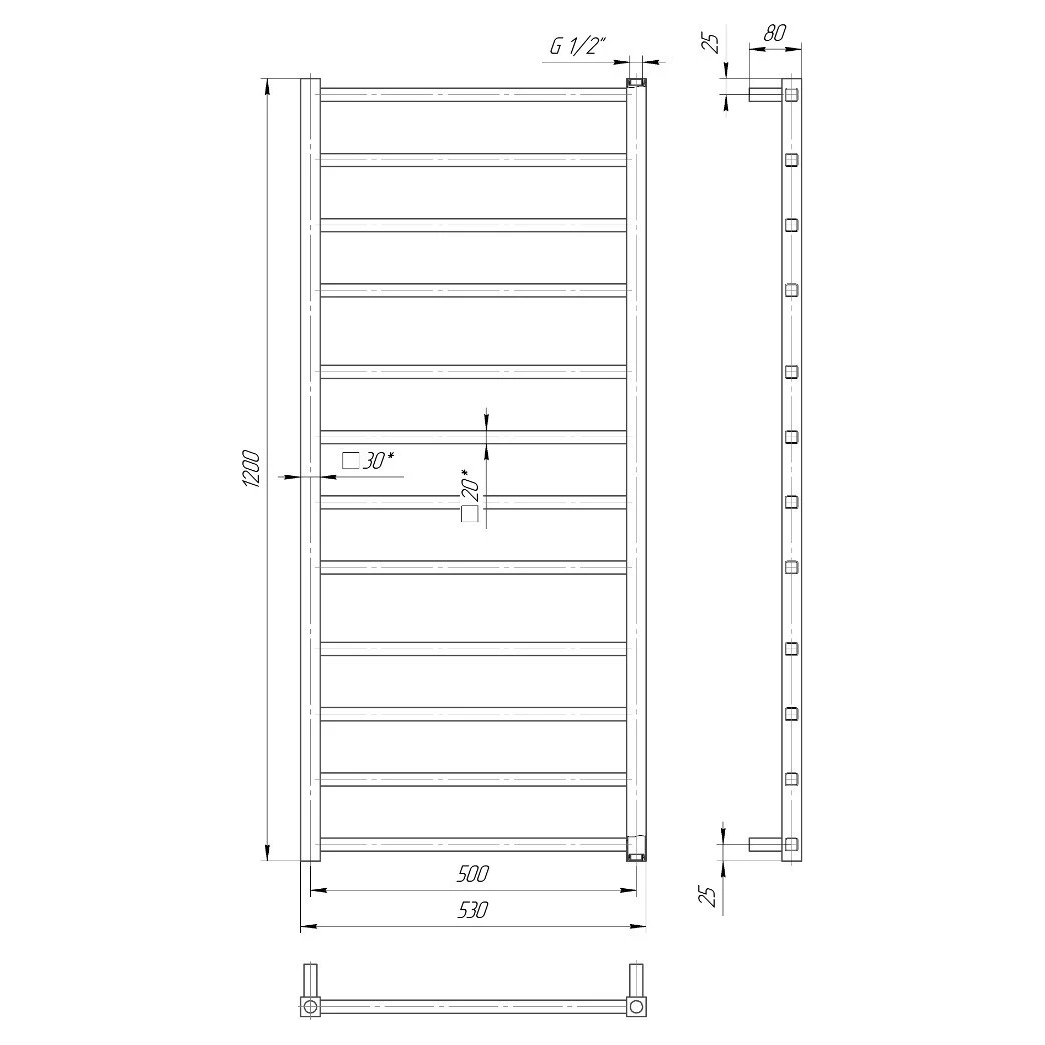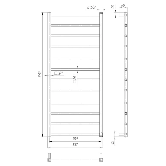 Виробник: MarioКолекція: Токіо 1200х530/500 Артикул: 1.2.0602.03.P Підключення: На гарячу воду Колір: Хром Гарантія: від виробника Висота 1200 мм Ширина 530 мм Глибина 80 мм Міжцентрову відстань 500 мм Кількість ребер: 8 Діаметр підключення: G 1/2 '' Обсяг 3,9 л Вага 8,3 кг Рекомендована потужність ТЕНа (MEG / REG / MOA), W 300 Матеріал: нержавіюча сталь Марка стали: AISI 304 Країна-виробник: Україна Комплект поставки: полотенцесушитель - 1шт. комплект кріплень - 1шт. кран Маєвського - 1 шт. заглушка - 1шт. паспорт - 1шт. коробка - 1шт.