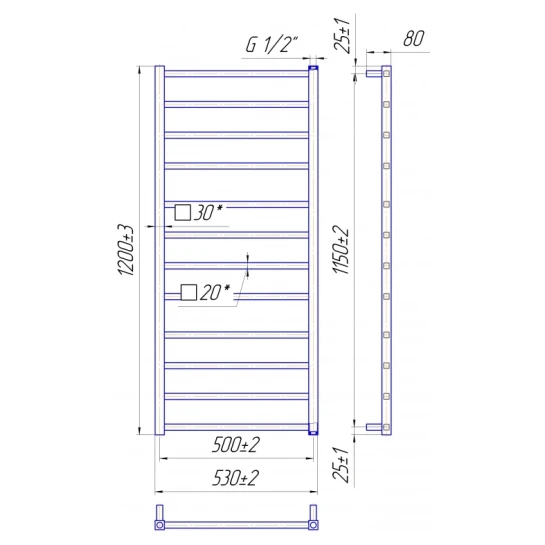 Виробник: MarioКолекція: Токіо 1200х530/500 покриття сатин Артикул: 1.2.0602.03.S Підключення: На гарячу воду Колір: Хром Гарантія: від виробника Висота 1200 мм Ширина 530 мм Глибина 80 мм Міжцентрову відстань 500 мм Кількість ребер: 8 Діаметр підключення: G 1/2 '' Обсяг 3,9 л Вага 8,3 кг Рекомендована потужність ТЕНа (MEG / REG / MOA), W 300 Матеріал: нержавіюча сталь Марка стали: AISI 304 Країна-виробник: Україна Комплект поставки: полотенцесушитель - 1шт. комплект кріплень - 1шт. кран Маєвського - 1 шт. заглушка - 1шт. паспорт - 1шт. коробка - 1шт.