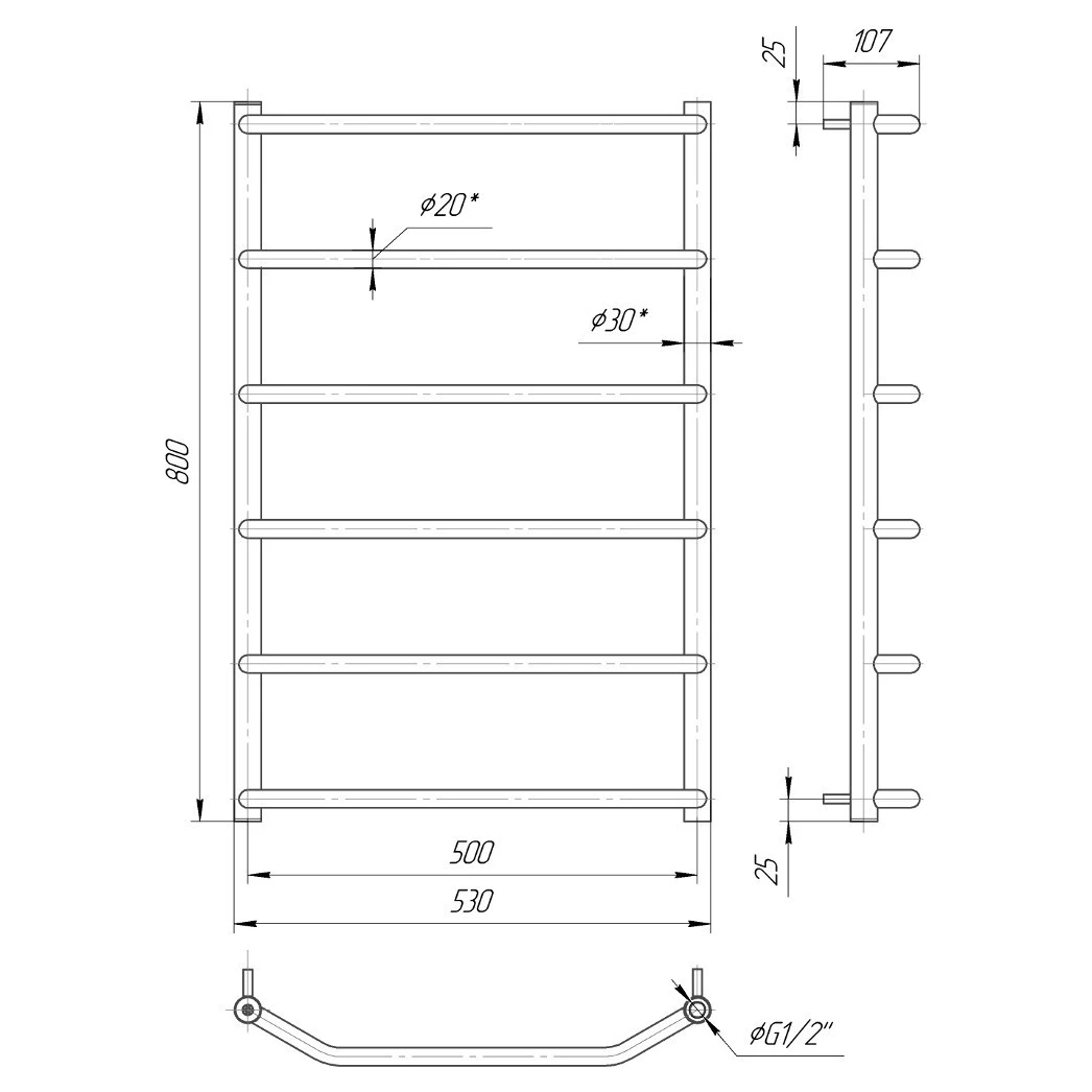 Виробник: Mario Колекція: Трапеція HP 800х530/400 Артикул: 1.3.2802.01.P Підключення: На гарячу воду Колір: Хром Гарантія: від виробника Висота 800 мм Ширина 530 мм Глибина 130 мм Міжцентрову відстань 500 мм Кількість ребер: 6 Діаметр підключення: G 1/2 '' Обсяг 1,6 л Вага 4,1 кг Рекомендована потужність ТЕНа (MEG / REG / MOA), W 120 Матеріал: нержавіюча сталь Марка стали: AISI 304 Країна-виробник: Україна Комплект поставки: полотенцесушитель - 1 шт. комплект кріплень - 1 шт. кран Маєвського - 1 шт. заглушка - 1 шт. паспорт - 1 шт. коробка - 1 шт.