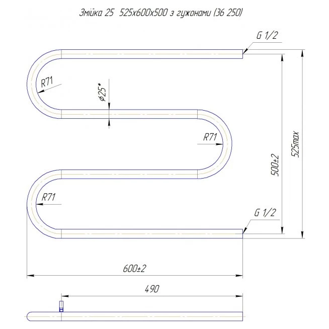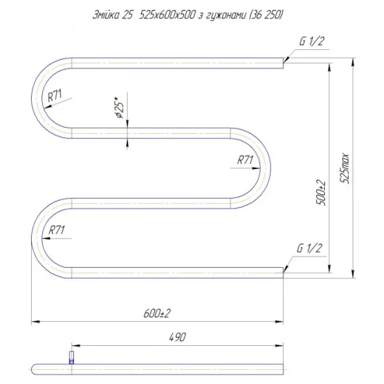 Рушникосушка водяна MARIO Змійка 25 525х600/500