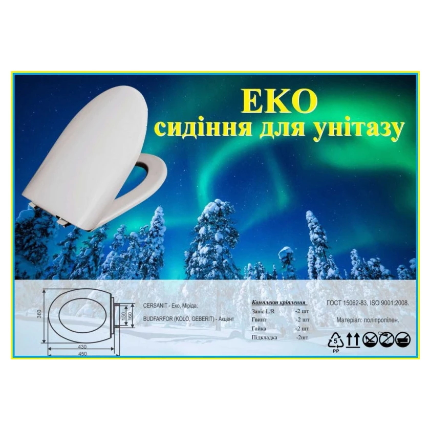 Підходить для унітазів: Cersanit: ЕКО, Merida; Budfarfor (Kolo, Geberit): Акцент. Сидіння SYDANIT Еко — це максимально практичне та бюджетне рішення для вашої сантехніки. Модель розроблена для тих, хто шукає надійний та функціональний виріб без зайвих витрат. Завдяки класичній формі та використанню легкого, але міцного поліпропілену, це сидіння ідеально підходить як для домашнього використання, так і для встановлення у громадських місцях або на орендованих квартирах.