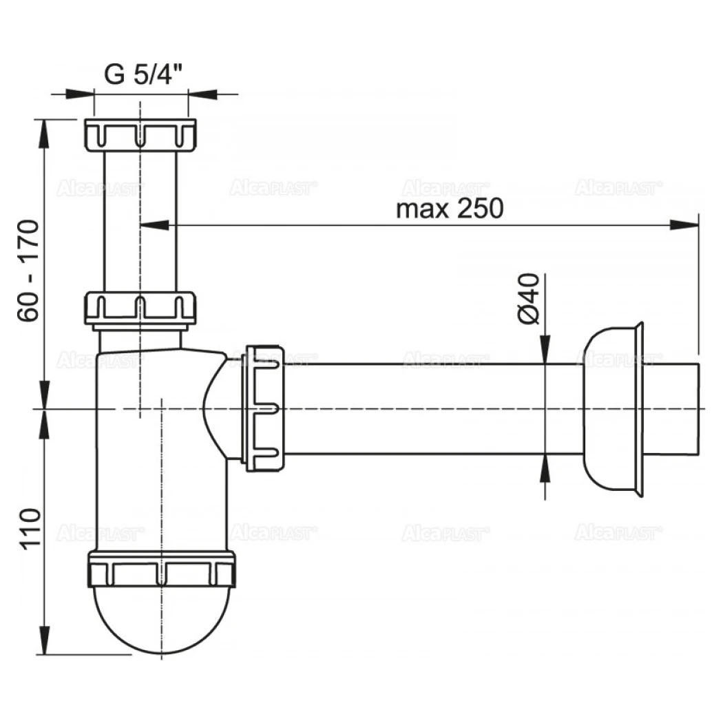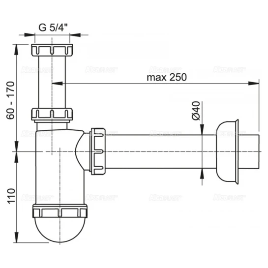 Сифон ALCAPLAST d40 з накидною гайкою 5/4" – це надійне та ефективне рішення для підключення умивальника до каналізаційної системи. Він забезпечує стабільний відвід води та надійно захищає приміщення від неприємних запахів, що надходять з каналізації, завдяки утворенню водяного затвора.