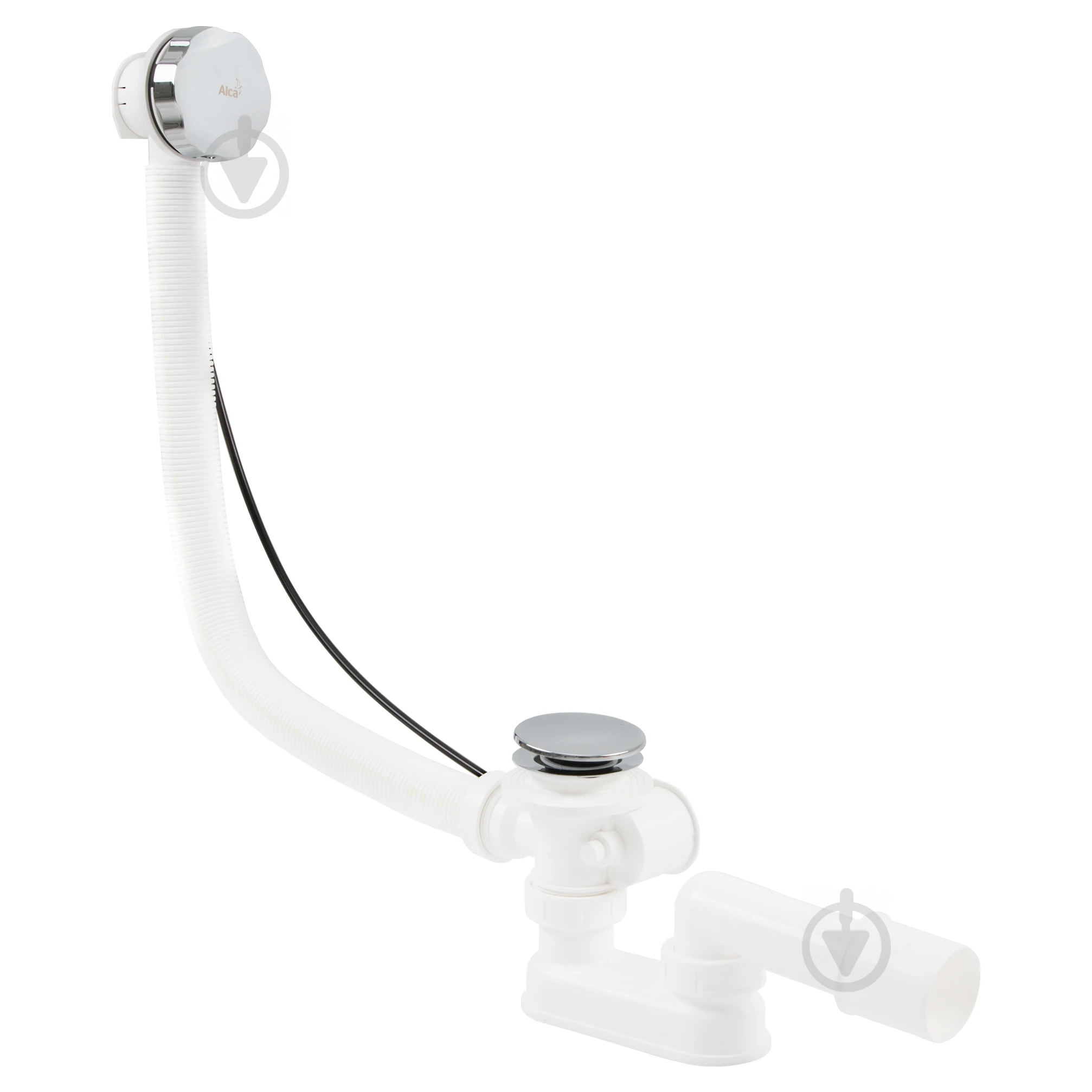 AlcaPlast Сифон для ванни автомат комплект метал 57см. (A55KM) Область застосування: Для зливу води з ванни у каналізаційний стік Для ванн стандартних розмірів Для ванн з випускним отвором Ø52 мм Властивості: Слив-перелив система для ванни Мокрий гідрозатвор з коліном, що обертається. Закриття зливного клапана за допомогою троса Боудена Гнучкий шланг системи переливу Технічні характеристики: Гідрозатвор: 50 мм Швидкість стоку води: 51,6 л/хв. Швидкість переливу: 42 л/хв. Опір гідрозатвору: 588 Па Термічна стійкість: 95 °С Зміст комплекту: Корпус сифона із системою переливу Поворотна сталева накладка, хромована Пробка із хромованого пластику Хромовані грати зливу з нержавіючої сталі Гідрозатвор сифону з поліпропілену, зварений ультразвуковим методом, стійкий до термічних та хімічних впливів. Монтажний набір Профільне ущільнення Логістична інформація: Довжина шлангу: 570 мм Вага: 0,7372 кг Розміри: 380x145x85 мм