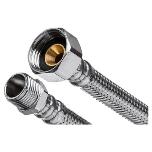 Шланг в стальному оплетенні (1/2вх3/8з) 40 см. INVENA (WS-07-040) Гнучкі гумові шланги в металевій оплітці з нержавіючої сталі з різьбовими приєднувальними наконечниками – це універсальне з'єднання, що використовується в побутових і промислових системах водопостачання. Гнучка підводка служить для підключення водопровідних приладів (змішувачів, змивних бачків, гидрофорных комплектів та ін) до систем холодного і гарячого водопостачання. Вони незамінні у важкодоступних місцях, де монтаж за допомогою звичайних труб (мідних, сталевих або поліпропіленових) важкий або неможливий. Подібного роду з'єднання гасять виникають в будь-якій системі водопостачання гідравлічні удари, які можуть призвести до її пошкодження. Гнучка підводка зменшує вібрацію і шум, викликані поточної рідиною. Її конструкція характеризується високим межею витривалості при вигині. Крім того, підводка володіє стійкістю до несильним механічних ударів тупим предметом.