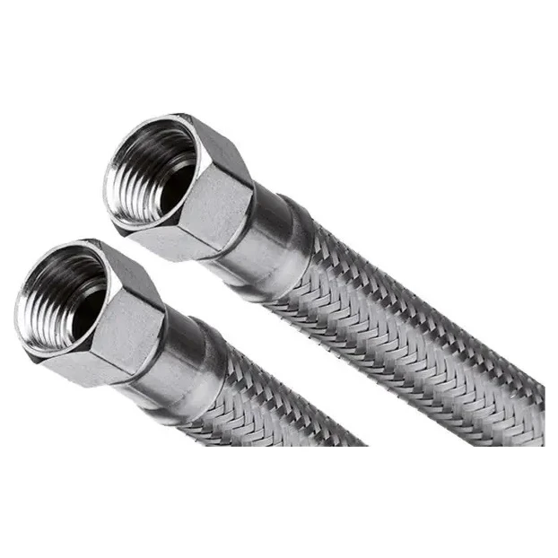 Шланг в стальному оплетенні, прохід 12 мм. (1/2вх1/2в) 40 см. INVENA (WS-40-040) Гнучкі гумові шланги в металевій оплітці з нержавіючої сталі з різьбовими приєднувальними наконечниками – це універсальне з'єднання, що використовується в побутових і промислових системах водопостачання. Гнучка підводка служить для підключення водопровідних приладів (змішувачів, змивних бачків, гидрофорных комплектів та ін) до систем холодного і гарячого водопостачання. Вони незамінні у важкодоступних місцях, де монтаж за допомогою звичайних труб (мідних, сталевих або поліпропіленових) важкий або неможливий. Подібного роду з'єднання гасять виникають в будь-якій системі водопостачання гідравлічні удари, які можуть призвести до її пошкодження. Гнучка підводка зменшує вібрацію і шум, викликані поточної рідиною. Її конструкція характеризується високим межею витривалості при вигині. Крім того, підводка володіє стійкістю до несильним механічних ударів тупим предметом.