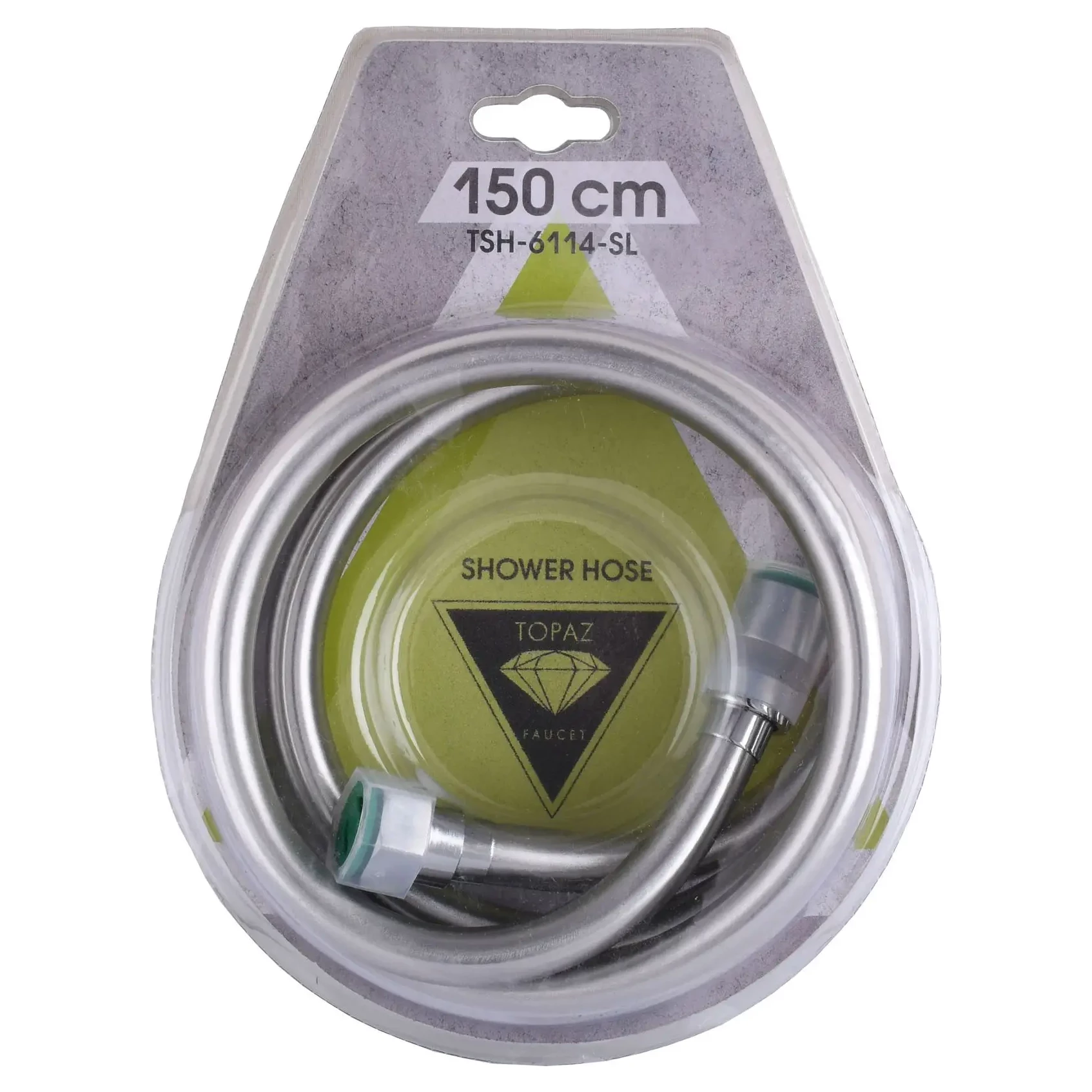 Душевий шланг Topaz TSH-6114-SL виготовлений із високоміцного якісного матеріалу – нержавіючої сталі/EPDM, не заламується та не перегинається. Такий шланг зручний в експлуатації, має простий спосіб монтажу. Шланг відповідає стандарту підключення – 0.5 дюйми, з`єднання Double Lock. Зручний у догляді, легко чиститься. Шланг довжиною 150 см. Вага шланга – 0.205 кг. Колір хром.