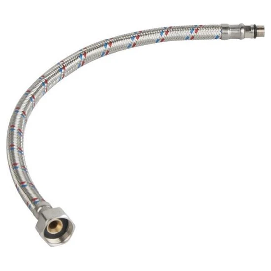 Шланг в нержавіючому обплетені PROFACTOR 1/2" М10 коротка голка 0,5м (в силіконі) — це нове покоління товарів у категорії гнучких шлангів для приєднання змішувачів (або інших сантехнічних пристроїв). Перевагою цієї продукції є додаткове полімерне покриття обплетення з нержавіючої сталі, що є оригінальною розробкою виробника. Термостійке полімерне покриття забезпечує комфортні умови монтажу та експлуатації, а також захищає від негативних впливів довкілля, продовжуючи термін служби виробу. Максимальний тиск – 25 бар, температура – 95 °С.