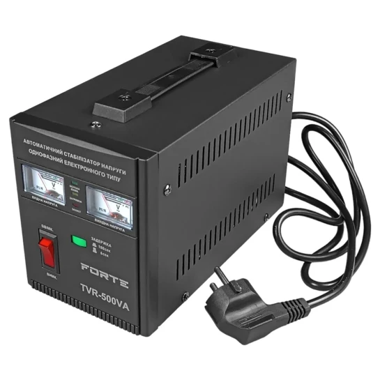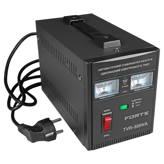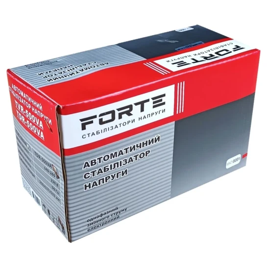 Стабілізатор напруги TVR-500VA — це побутовий прилад, який випускає китайська компанія-виробник FORTE. Він призначений для надійного захисту електричних приладів і різного устаткування від різкої зміни напруги в мережі. Ця модель, наприклад, відмінно підходить для підключення котла.
