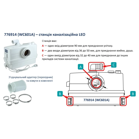 Компактна автоматична каналізаційна установка оснащена насосом з ріжучим механізмом і призначена для перекачування побутових стічних вод під тиском з житлових приміщень (туалетів, умивальників, ванн, душових кабін, пральних і посудомийних машин), де вони не можуть відводитися в каналізаційну систему самопливом.