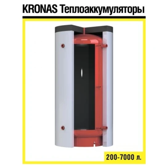 Теплоакумулятор KRONAS - Акумулююча (Буферна) ємність (пласка). Артикул: ТА1НЖ.800.0 Обсяг ємності: 800 л Виробник: Kronas Вага: 158 кг Теплоакумулятор KRONAS для твердопаливного котла це універсальний пристрій, який значно підвищує ефективність роботи системи опалення. Буферна ємність системи опалення одночасно вирішує кілька завдань: - приймає надлишок теплової енергії виробленої котлом й таким чином, котел не входить в режим малої потужності або тління (при якому відбувається значне зниження ККД за рахунок збільшення частки СО) - подовжує період між завантаженнями палива - подовжує період між обслуговуванням котла. При відсутності режиму тління, теплообмінник котла значно менше піддається засміченню, зберігаючи високий ККД виключає ймовірність закипання котла. При правильній обв'язці, теплоаккумулятор прийме на себе надлишок тепла, вироблений котлом, наприклад, при відключенні електроенергії. Використовуючи додаткові патрубки, теплоаккумулятор можна підключити до декількох котлів).