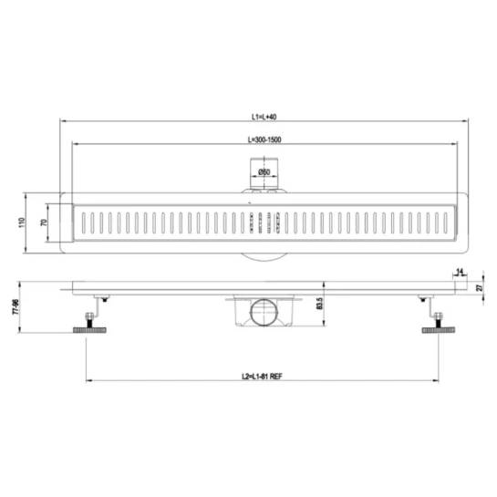Використовується для відведення води. Монтується під водонепроникну плитку на рівні підлоги та встановлюється в душових та інших приміщеннях. Рекомендується встановлення кваліфікованими фахівцями.