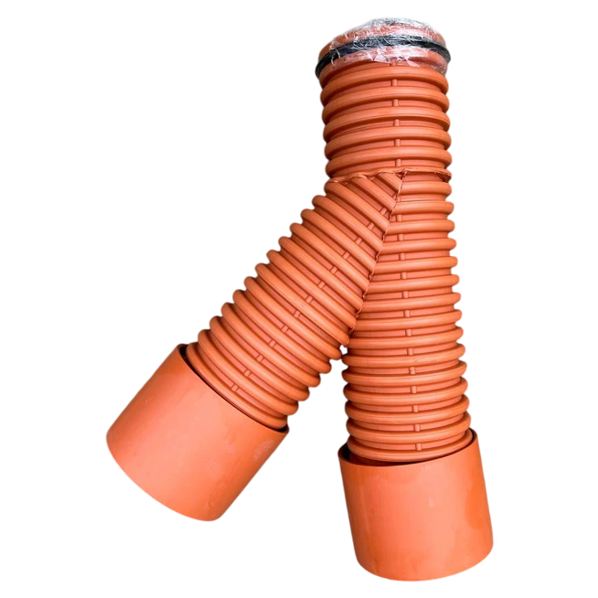 Гофрований каналізаційний трійник IPIast-cor — це високоякісний фасонний елемент, призначений для створення розгалужень у каналізаційній мережі, забезпечуючи надійне та герметичне з'єднання. На відміну від звичайних фітингів, його гофрована (рифлена) структура надає йому підвищеної міцності та певної еластичності, що значно полегшує монтаж і підвищує довговічність системи.