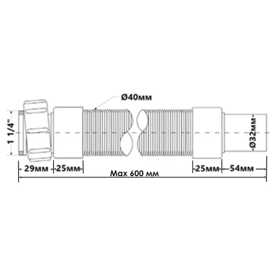 Труба розтяжна (гофра) McALPINE 1 1/4″x32 мм до 600 мм FLX-CCB-600 виконана з високоякісного поліпропілену білого кольору. Діаметр підключення накидної гайки складає 1 1/4″, підключення до каналізації 32 мм. Максимальна довжина розтяжної труби 730 мм. McALPINE - британський виробник сантехніки з 1902 року. Ця фірма стала першою в Великобританії виготовляти пластикові сифони. Зараз компанія експортує до багатьох країн більше 10 000 найменувань сантехніки для каналізації і вентиляції. Продукція компанії McALPINE витримує екстремальний холод і спеку, не розбивається і не ламається під час експлуатації.