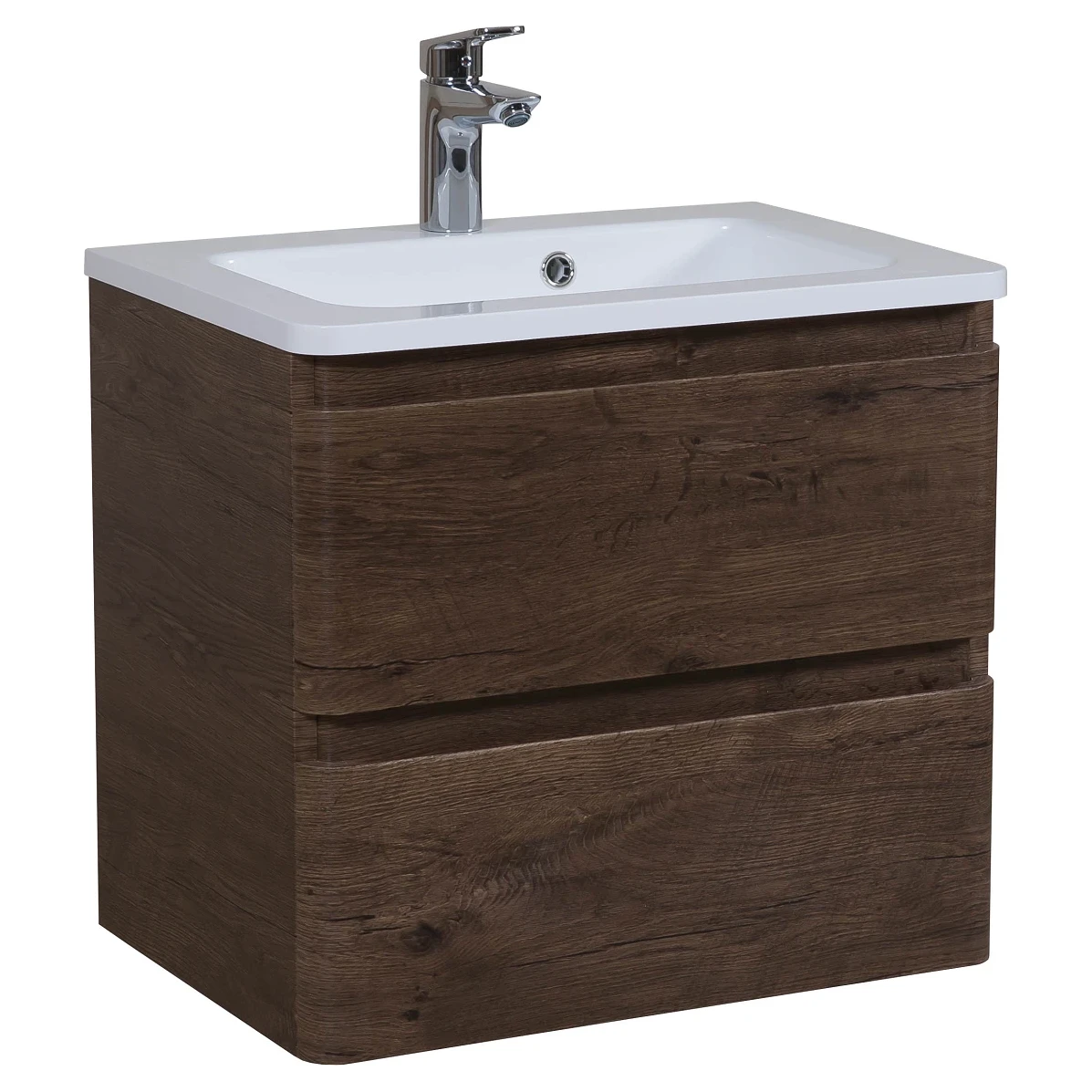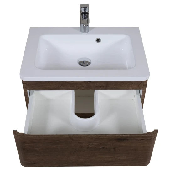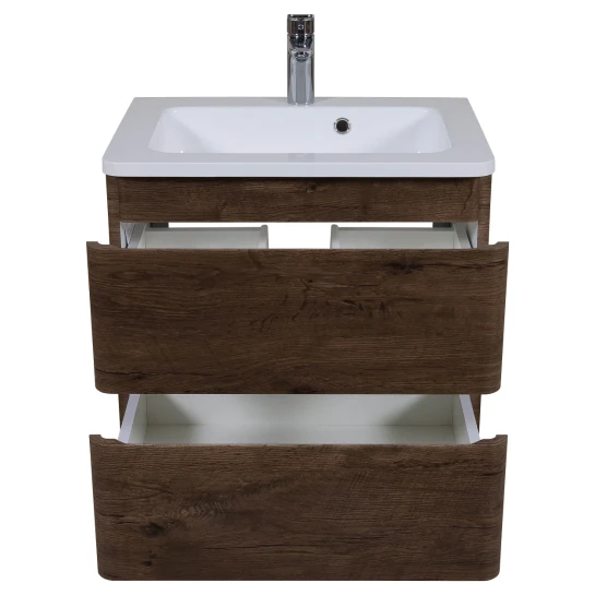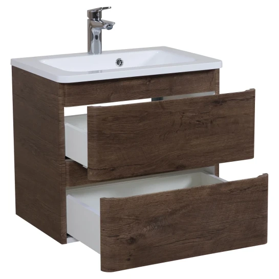 Комплект AQUARODOS Акцент 70 — це вишукане поєднання природної естетики та сучасного інженерного дизайну. Завдяки глибокій текстурі «Каштан» та консольному (підвісному) способу монтажу, ця тумба створює ефект легкості та візуально розширює простір ванної кімнати. Модель ідеально підходить для інтер'єрів у стилі еко-мінімалізм, лофт або сучасний модерн.