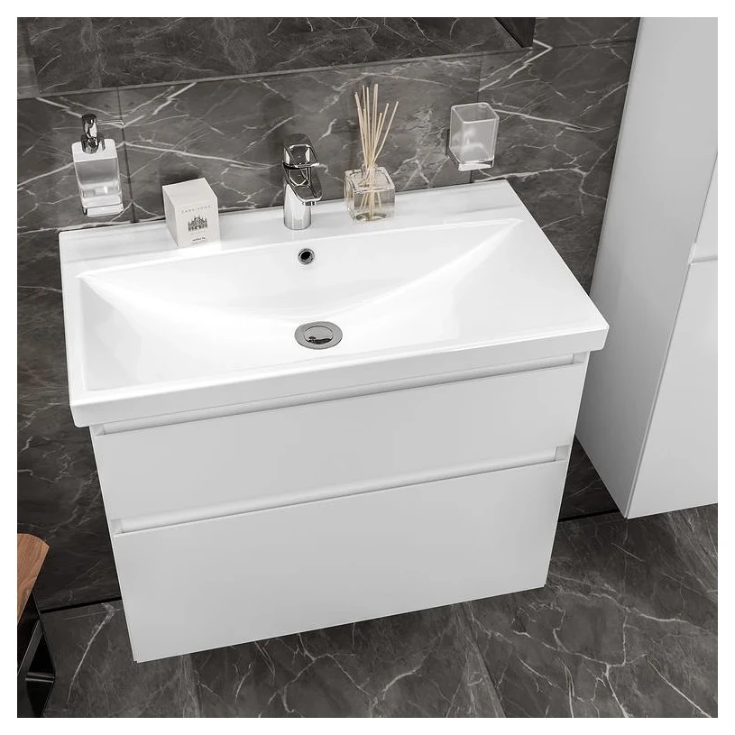 Консольна тумба AQUARODOS Еліт у білому кольорі з умивальником Elite 100 см – це елегантне та функціональне рішення для вашої ванної кімнати. Поєднання стильного дизайну та практичності робить цю тумбу чудовим вибором для сучасного інтер'єру.
