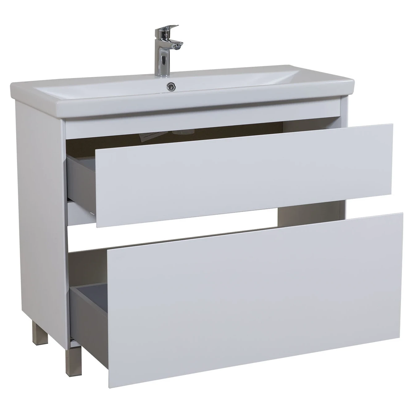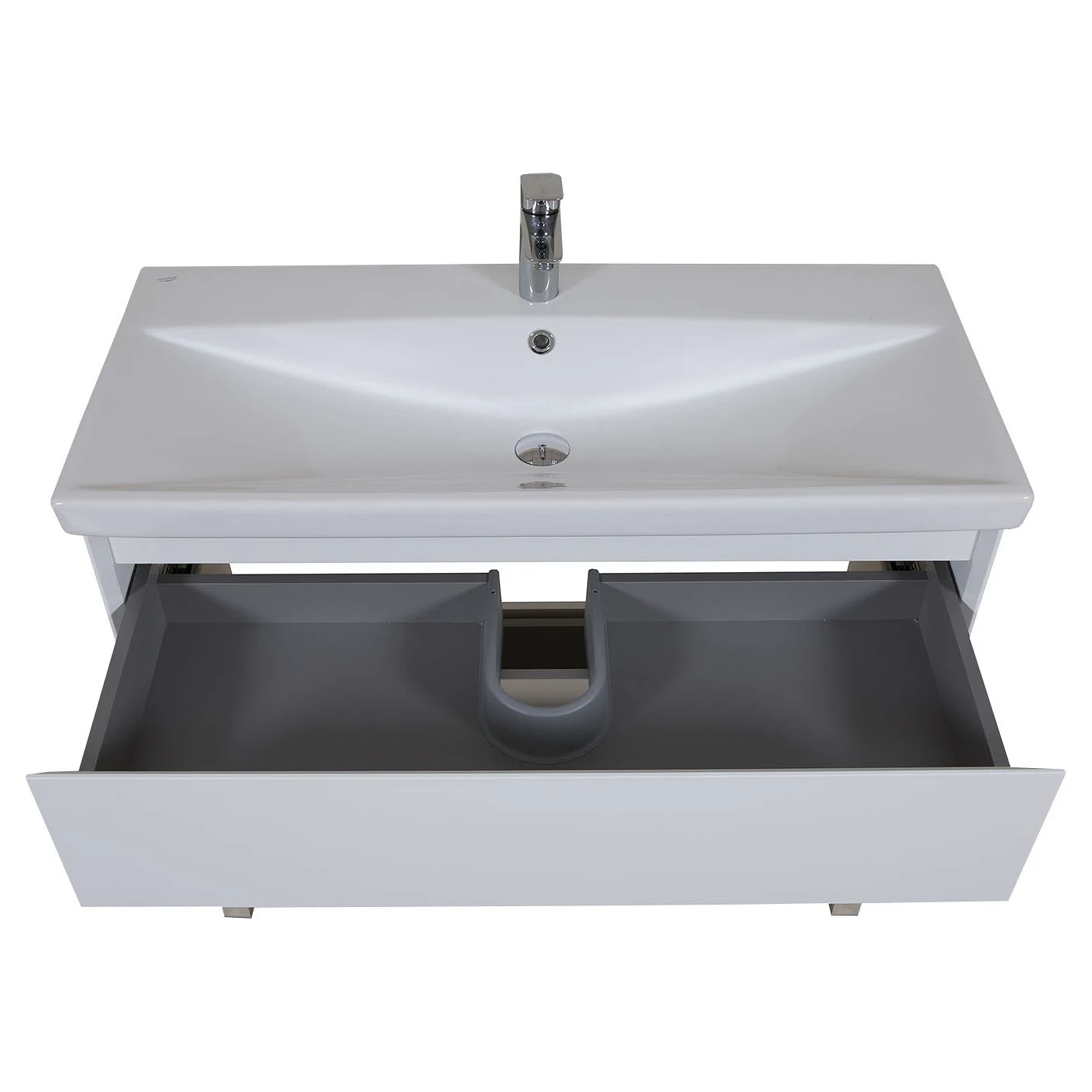 Тумба AQUA RODOS Еліт з умивальником CeraStyle Elite 100 см біла консольна — це меблі, виконані в сучасному дизайні, який забезпечить ефектний вигляд усьому інтер'єру. Фасад та боковини покриті трьома шарами ґрунту та пофарбовані двома шарами поліуретанової фарби виробництва «KEMICHAL» (Італія). Високоякісна фурнітура провідних світових виробників, сертифікована і відповідає європейським стандартам якості.