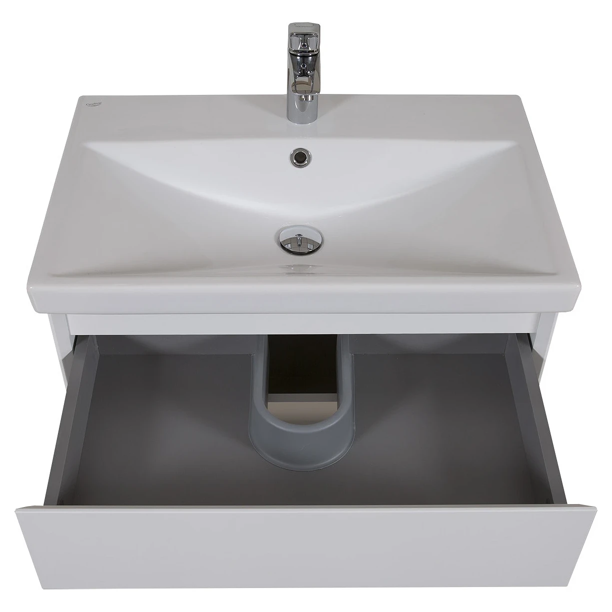 Тумба AQUA RODOS Еліт з умивальником CeraStyle Elite 70 см біла консольна — це меблі, виконані в сучасному дизайні, який забезпечить ефектний вигляд усьому інтер'єру. Фасад та боковини покриті трьома шарами ґрунту та пофарбовані двома шарами поліуретановою фарбою виробництва «KEMICHAL» (Італія). Високоякісна фурнітура провідних світових виробників, сертифікована і відповідає європейським стандартам якості.
