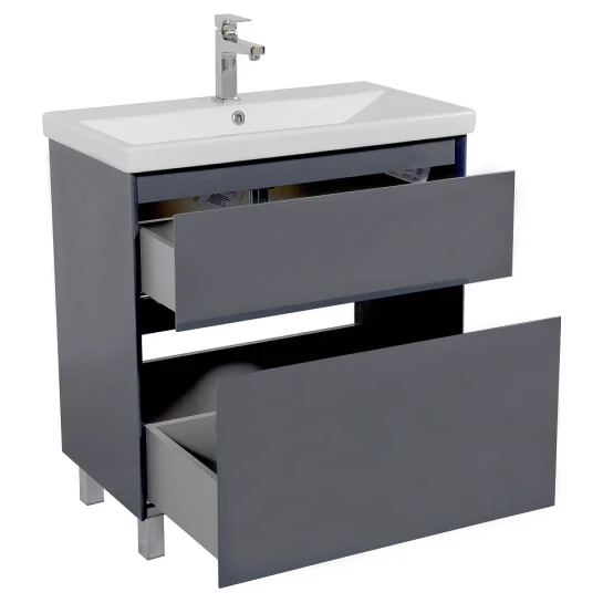Тумба AQUA RODOS Еліт з умивальником CeraStyle Elite 80 см Графіт глянець підлогова - це меблі, виконані в сучасному дизайні, який забезпечить ефектний вигляд усьому інтер'єру. Фасад та боковини покриті трьома шарами ґрунту та пофарбовані двома шарами глянцевою поліуретановою фарбою виробництва «KEMICHAL» (Італія). Високоякісна фурнітура провідних світових виробників, сертифікована і відповідає європейським стандартам якості.