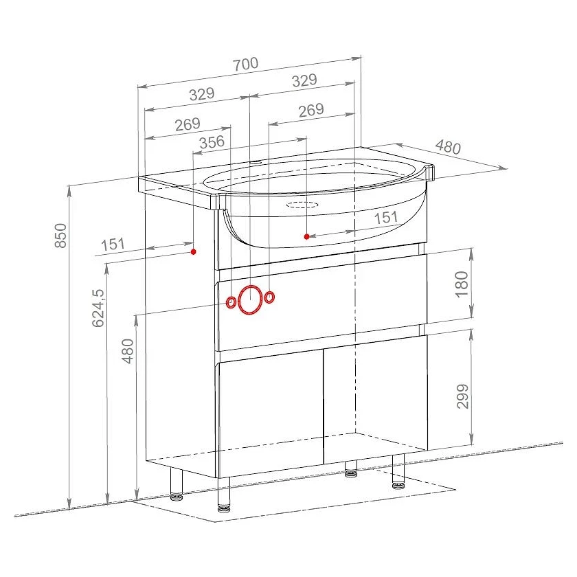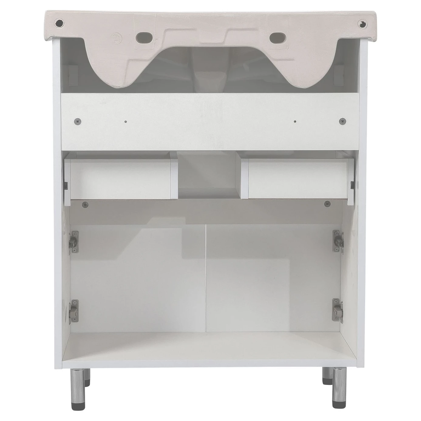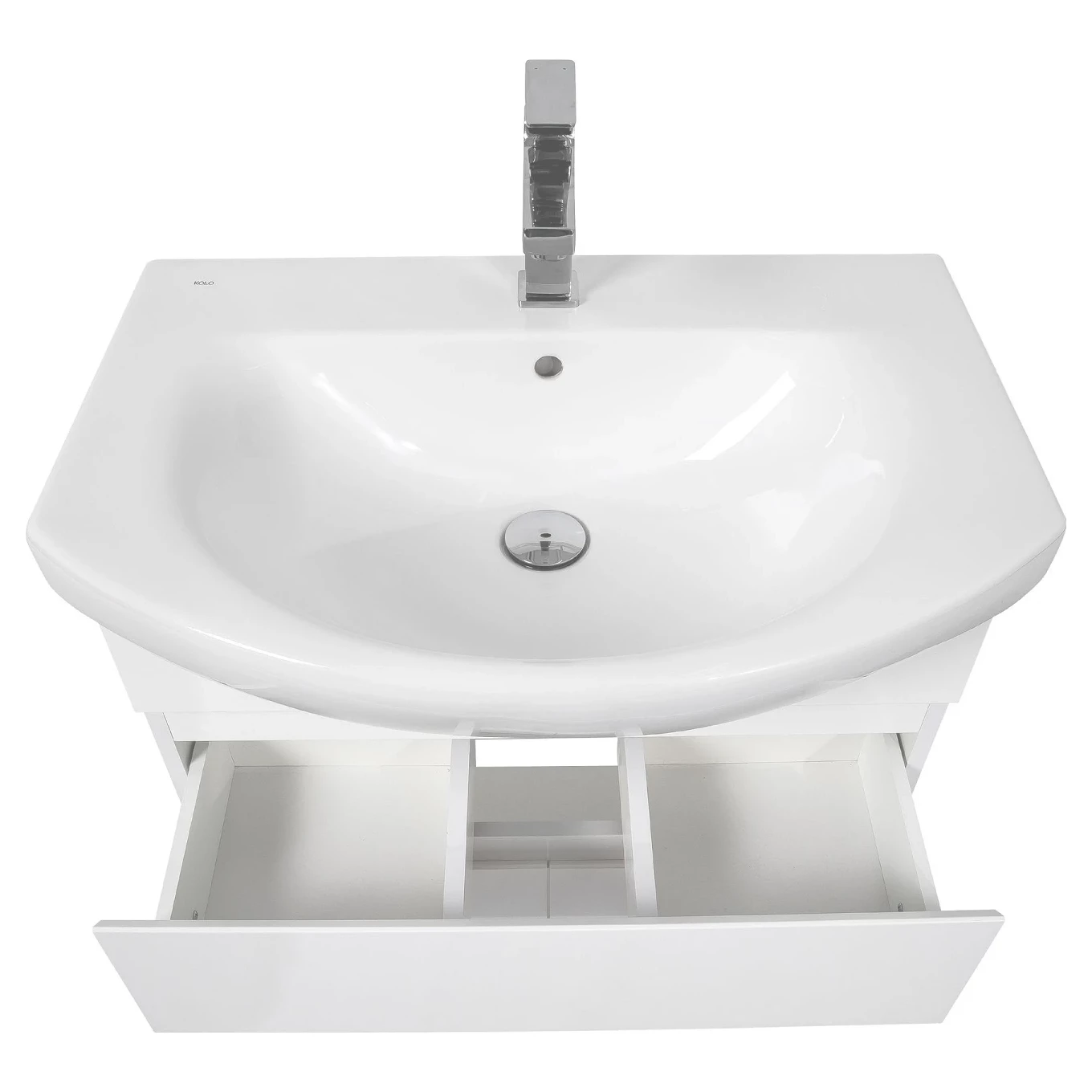 Колекція Уно від Aqua Rodos - це красиві меблі для ванної кімнати, що потішать поціновувачів мінімалізму в оформленні інтер'єру. Тумба Уно виконана в популярному мінімалістичному стилі. Корпус тумби виконаний ДСП у білому глянсовому фарбуванні, а фасади з МДФ пофарбовані білою глянсовою фарбою. Конструктивно тумба складається з 2 містких відділень, з 2 орними дверцятами та висувної шухляди, що дає змогу максимально ефективно використовувати простір усередині тумби. На тумбі немає виступаючих деталей і фурнітури, ручки фрезеровані під кутом 45%. До тумби відмінно підходить зручна сучасна керамічна раковина Руна 70 см від виробника Kolo. Тумба виготовленні в підлоговому виконанні, в комплекті йдуть ніжки, які покупець прикручує самостійно.