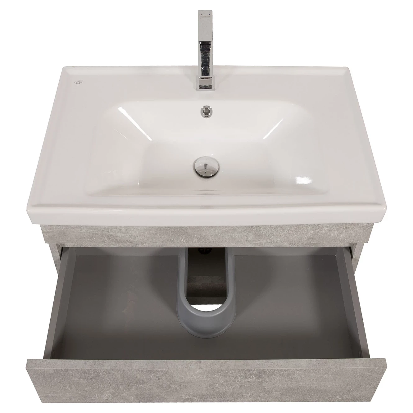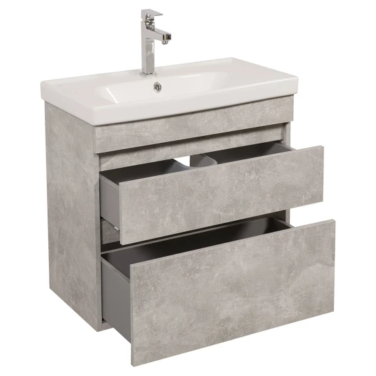 Мебель "Вінтаж" (бетон) з умивальником "Frame" 80 см (консольна) Компанія Aqua Rodos по праву вважається одним з найкращих виробників ексклюзивної та якісної сантехніки в Україні. Вже багато років бренд активно розвивається й завойовує ринок у цьому сегменті на всій території СНД, асоціюючись із високою якістю, стильним дизайном і довголітньою надійністю. Компанія використовує найсучасніше обладнання, а також сертифіковані матеріали від найкращих світових виробників, створюючи якісну й екологічну продукцію. Кожен етап виробничого процесу проходить через контролери якості. Колекція Вінтаж — це гарні меблі для ванної кімнати, що потішать поціновувачів мінімалізму в оформленні інтер'єру. Представлена тут підвісна пристінна тумба Вінтаж ОР0002421 від Aqua Rodos має габаритні розміри (ШхВхГ) 70 х 58 х 45 см і обладнується 2 висувними ящиками. Модель комплектується керамічною мийкою серії Frame завширшки 80 см від турецької компанії Cerastyle.