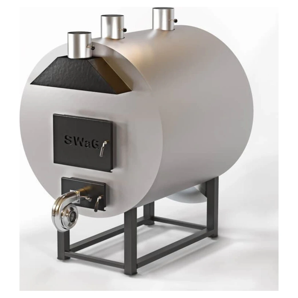 SWAG Твердопаливний теплогенератор 60 кВт Параметри теплогенератора ТГ SWaG-60: Максимальна потужність ТГ 60 кВт Орієнтовний опалювальний об'єм приміщень до 1800 м3 Паливо, що використовується Деревина, тріска, тирса, стружка, пелети (частково), солома, брикети, вугілля (крім коксу), торф, відходи переробки с/г продукції: солома, лушпиння, зерновий відсів і т.д. Час роботи на одному завантаженні від 2 до 12 годин Рекомендована температура теплоносія на вихідних патрубках з ТГ 40-60 оС Максимальна температура теплоносія на вихідних патрубках з ТГ 90 оС Діаметр димохідного отвору, мм 200 мм Діаметр отвору повітроводів, мм 200 мм Площа теплообмінника 6,8 м2 Рекомендована висота димаря 7 м Мінімальна тяга димоходу 20 Па Вага: 720 кг Розміри ТГ Висота 1-900 мм Довжина -1720 мм Діаметр -1250 мм Об'єм топки -0,7 м3