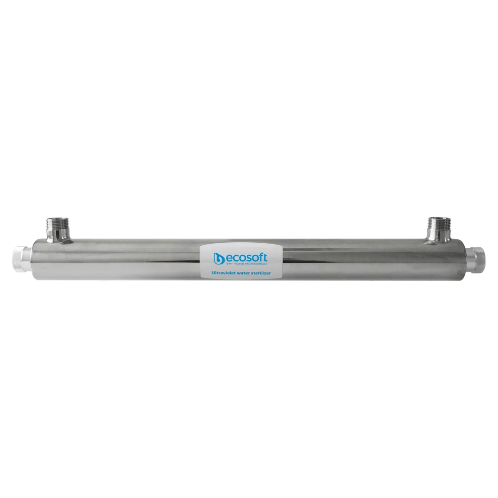 Ультрафіолетовий знезаражувач води Ecosoft E-480 — металевий корпус, всередині якого розміщена ультрафіолетова лампа в спеціальному кварцевому рукаві.
