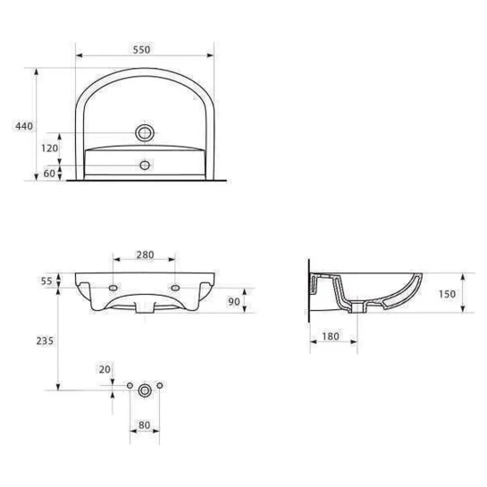 Керамічний умивальник ARTECO оснащений двома отворами - для переливу та для установки змішувача. Він призначений для самостійного підвішування на стіну з декоративним сифоном, для монтажу на п'єдестал DECO або ж напівп'єдестал PRESIDENT.