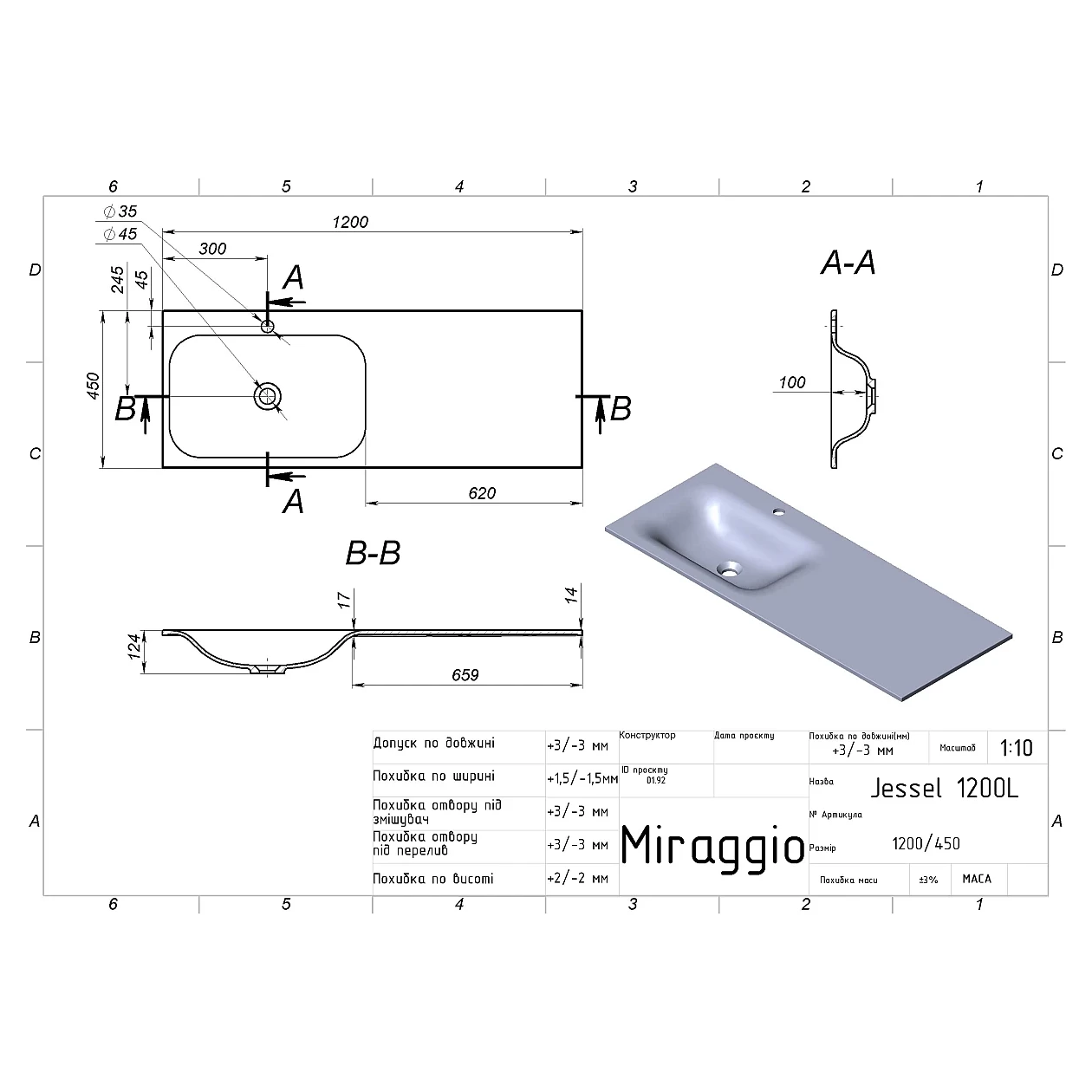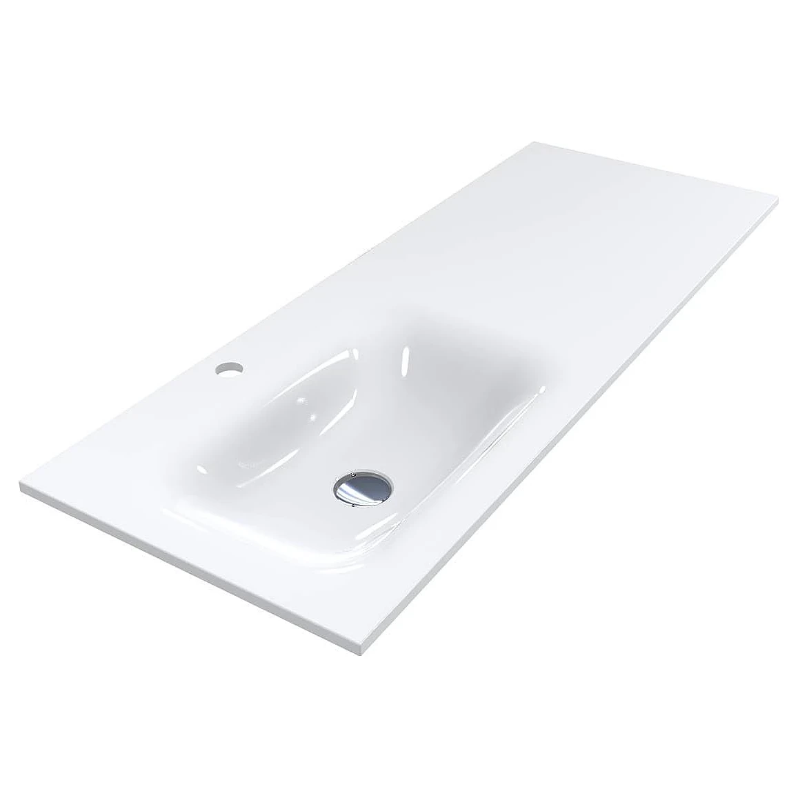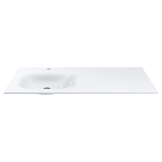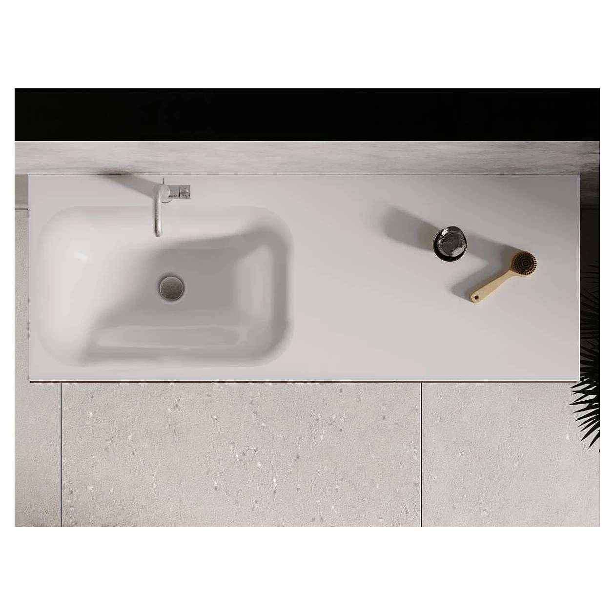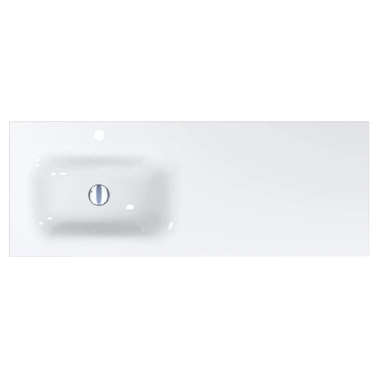 Меблевий умивальник з литого мармуру JESSEL 1200 L з крилом праворуч від чаші – оптимальне рішення, якщо локація ванної кімнати вимагає змістити раковину у певний бік. Плавні лінії чаші перешкоджають розбризкуванню води, широке крило дозволяє зручно розмістити гігієнічні засоби. Умивальник має кілька типів монтажу - накладний та врізний.