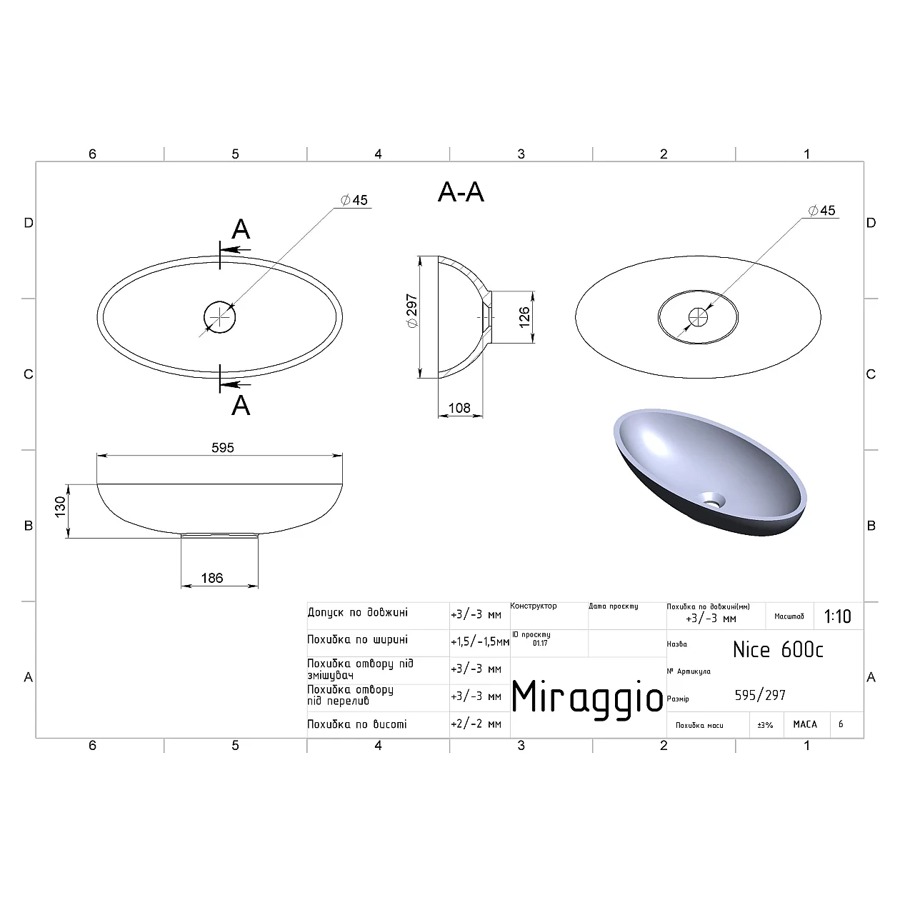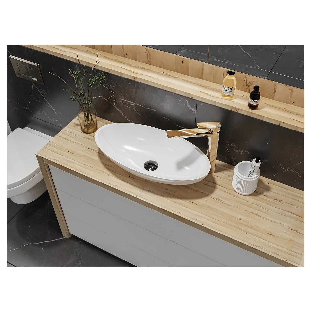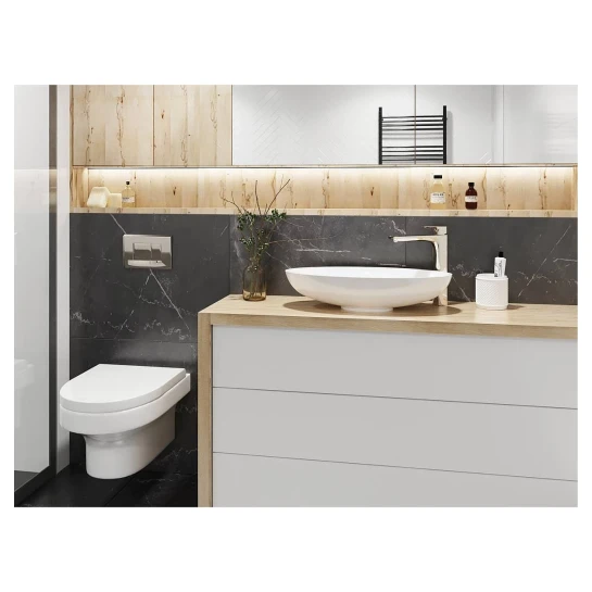 Умивальник із литого мармуру NICE має форму ідеального еліпса із потовщеними стінками. Масивна та витончена водночас раковина стане стильним елементом дизайну вашої ванної кімнати. Умивальник передбачає окремий або настінний змішувач. Має накладний тип монтажу.