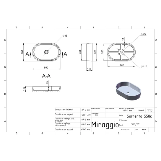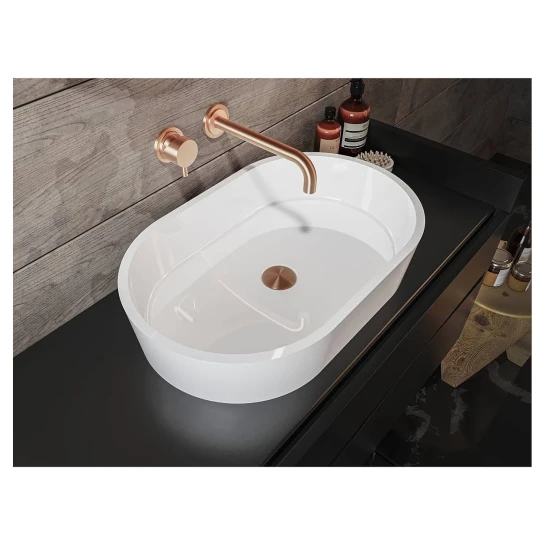 Овальний умивальник із литого мармуру SORRENTO - відмінне рішення для ванни у сучасному стилі. Середньої товщини стінки раковини, скошені на дно, створюють ефект широкої об'ємної чаші. При цьому умивальник не займає багато місця. Раковина передбачає окремий або настінний змішувач. Умивальник має накладний тип монтажу.