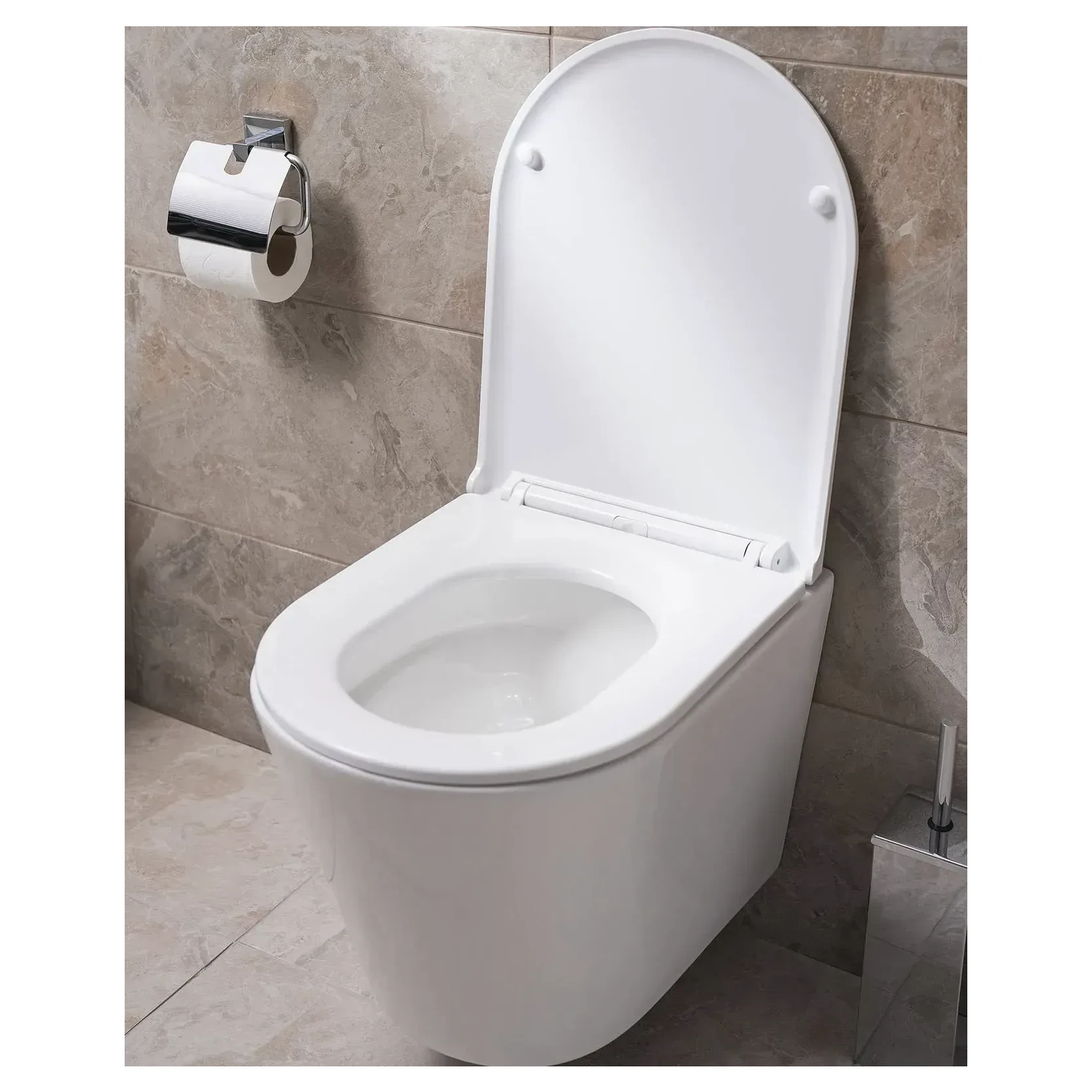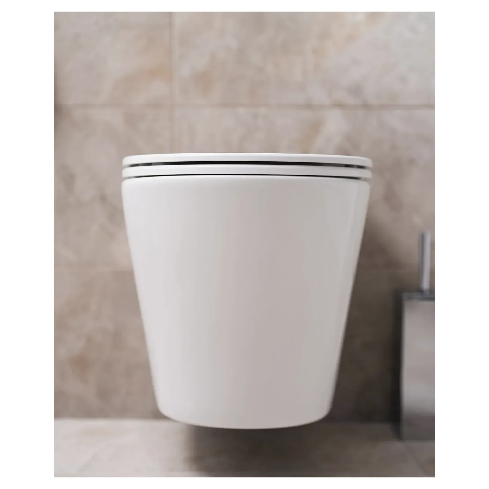 Підвісний унітаз GRACE поєднує сучасний стиль та інноваційні технології, роблячи вашу ванну кімнату комфортною й естетичною. Завдяки підвісній конструкції, він надає інтер'єру легкості та спрощує прибирання під ним. Сидіння з системою Soft-close забезпечує плавне та безшумне закривання для додаткового комфорту. Змивна система "Торнадо" створює потужний потік води, що ефективно очищує чашу й економить воду. Унітаз GRACE — це гармонійне поєднання дизайну, зручності та функціональності для вашого сучасного простору.