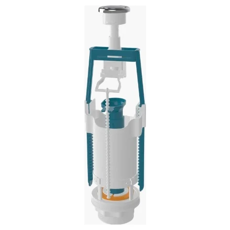 NOVA Випускний механiзм для змивноi арматури (4802) Досить частою проблемою у ванній кімнаті є механізм бачка, який неправильно змиває, або не змиває воду зовсім. У цьому випадку несправний блок автоматики бачка слід замінити на новий. Залежно від конкретної проблеми, яка виникла під час експлуатації, може вийти з ладу випускний механізм або клапан подавання води. У арсеналі моделі виділяються і комплекти механізмів для бачка і випускають окремо клапани подачі води, і випускні механізми. Характерики: Виробник: NOVA Країна-виробник: Туреччина. Тип комплектуючого для сантехніки: Арматура для зливного бачка. Матеріал конструкції: первинний поліпроп. Може бути встановлено в різні типи зливних бачків, оскільки у них є можливість регулювання рівня висоти, що забезпечує мінімальний розмір 31 см., а максимальний 38 см. Ексцентрик дає можливість для зміщення кнопки сливу на 1,5 см. З'єднані розміри і діаметр кнопки стандартні і підходять для основної маси бачків типу компакт - дисків.
